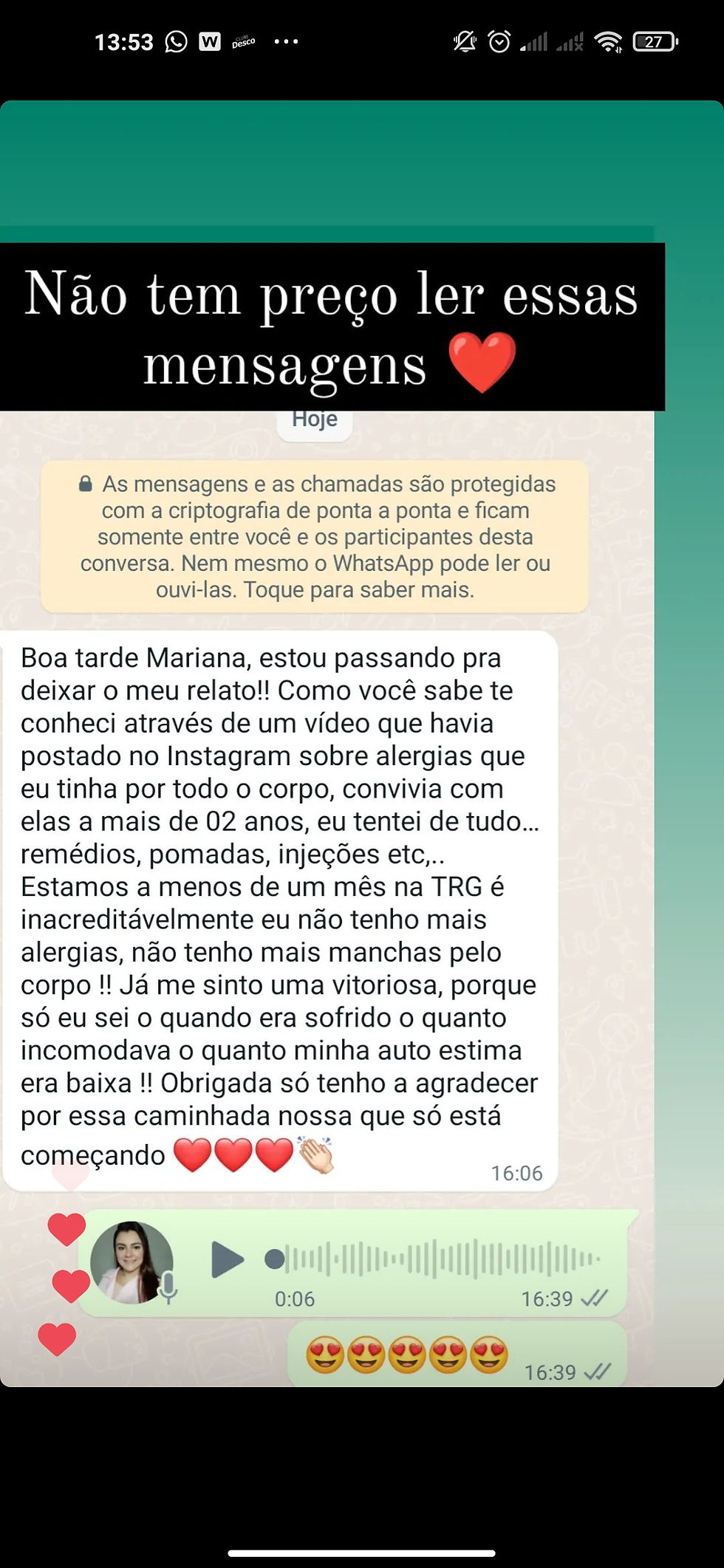 Separei esse espaço para deixar alguns relatos do meu trabalho, porém no link abaixo está o meu Instagram no qual você poderá ver alguns relatos a mais ❤️